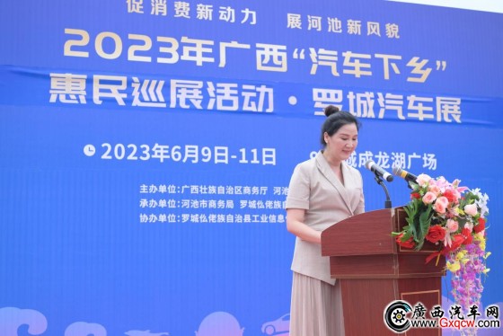 ▲河池市商務(wù)局副局長(zhǎng)莫加京宣布羅城汽車(chē)展開(kāi)幕