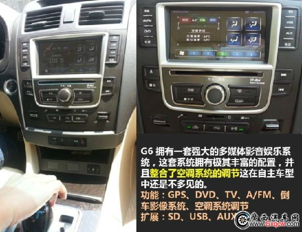 整車配備多處儲(chǔ)物空間,且大部分深度都足夠,前后排均配備水杯架。180cm身高的小編坐進(jìn)去毫無壓迫感,寬松舒適。再看中控臺(tái),2013款G6并沒有對(duì)中控區(qū)做出調(diào)整,但是它強(qiáng)大的功能和豐富的配置早已令很多同級(jí)車型自愧不如。