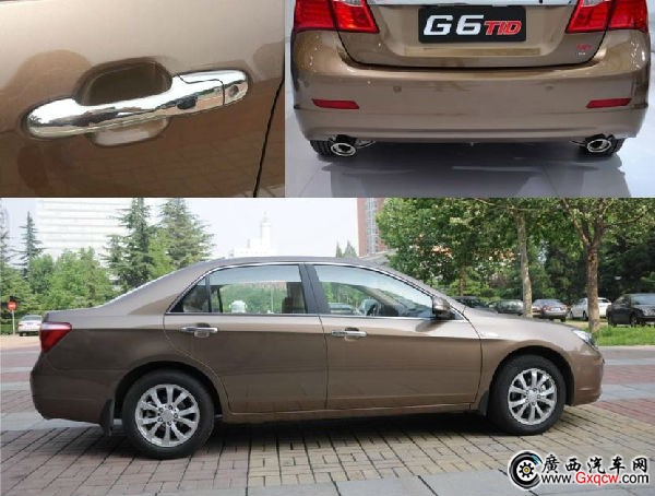 G6的尾部可以用兩個(gè)詞來形容:穩(wěn)重、耐看。在圓潤的線條修飾下,顯得很敦實(shí),金屬雙排氣尾喉的運(yùn)用凸顯了動(dòng)感氣息,這也是2013款G6的改進(jìn)之處。