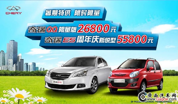 本周末7月7日―7月8日,奇瑞汽車周末狂歡日,周末喜樂會清涼來襲,奇瑞汽車重磅推出“暑期特供 限時限量”優(yōu)惠活動,凡到店客戶均可領(lǐng)一份精美禮品QQ限量版車型僅售26800元,E5特供版55800元,以冰點價格回饋廣大消費者,在這個暑假為消費者帶來清爽實惠,且凡周末到店看車客戶均可領(lǐng)一份精美禮品。咨詢電話:0772-3217222