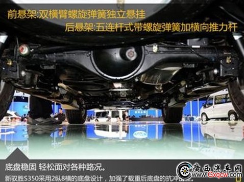 非承載式車身,專業(yè)越野底盤,前懸架為雙橫臂式扭桿彈簧獨立懸架,后懸架為五連桿式非獨立懸架,配合一套分時四驅系統(tǒng),有著不錯的通過性能.采購美國博格華納的四驅分動器,實現與**四驅技術同步。新馭勝S350AT車型的驅動模式分為后輪驅動、智能四驅模式。適時智能四驅模式結構簡單,穩(wěn)定性高,堅固耐用。陡坡、泥濘或者雪地路面都可輕松應對,既能保證車輛的動力性和通過性,又能兼顧燃油經濟性。新馭勝S350選取了瑪吉斯全地形越野輪胎作為全系的標配,強化了整車的通過性能,更凸顯了新馭勝S350的硬派風格