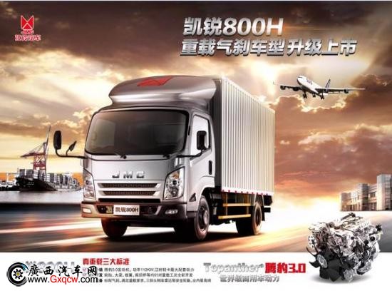 在國內(nèi)物流行業(yè)競爭日益激烈的情況下,高端輕卡所占領(lǐng)的市場份額也逐漸擴(kuò)大。為順應(yīng)市場需求,江鈴汽車全新推出重載輕卡凱銳800H,其是一款真正意義上的重載輕卡,絕非簡單的添加氣剎或加長貨廂。并針對重載實(shí)際工況對車輛性能的需求,對大梁、前后橋、板簧和輪胎等關(guān)鍵的部件結(jié)構(gòu)進(jìn)行了定向開發(fā),對超過400個整車零部件進(jìn)行了優(yōu)化升級。同時(shí),凱銳800H更是同級車型中安全配置最全面的。