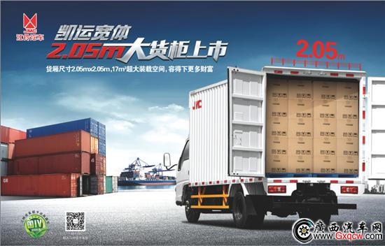 流線型楔型車身,霍爾姆赫茨協(xié)振腔,車身密封較同類車型提高10%,低噪音發(fā)動(dòng)機(jī),極大降低凱運(yùn)寬的行駛噪音;時(shí)尚潮流外觀、原裝大功率冷暖空調(diào)、遙控中控、透氣天窗、鈦銀內(nèi)飾、李爾座椅,駕乘舒適性媲美乘用車。