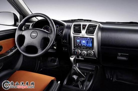 在內(nèi)飾方面,2016款江鈴寶典以全系標(biāo)配的時(shí)尚舒適設(shè)計(jì),顛覆了以往的簡(jiǎn)約樸素風(fēng)格。黑橙色調(diào)搭配的內(nèi)飾,帶來(lái)強(qiáng)烈的視覺(jué)沖擊效果,更顯運(yùn)動(dòng)時(shí)尚。冰藍(lán)儀表盤(pán)以及7寸中控大屏,讓車內(nèi)時(shí)光更愉悅;皮質(zhì)座椅、車門(mén)內(nèi)飾板軟質(zhì)皮革,都讓這個(gè)老牌皮卡更具檔次和質(zhì)感。