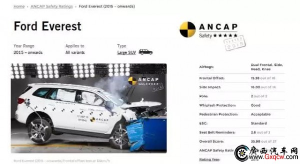 4月25日,2016年度**批C-NCAP碰撞試驗結(jié)果在北京車展發(fā)布,福特撼路者以55.8分的總成績斬獲五星,這是硬派中大型SUV參加C-NCAP**個五星安全冠軍。連同2015年澳洲A-NCAP的五星安全冠軍,撼路者已經(jīng)斬獲中澳安全碰撞測試“雙五星”。