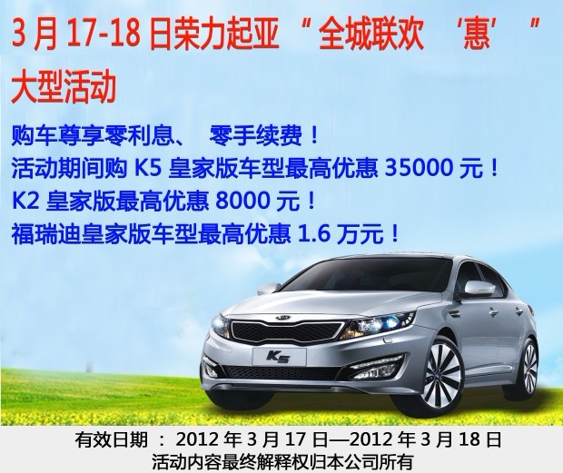 活動主題:榮力起亞:全城聯(lián)歡“惠”