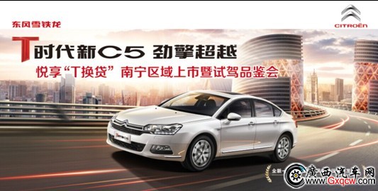 T時代新C5 勁擎超越 悅享“T換貸”——南寧區(qū)域上市暨試駕品鑒會即將于9月14日在南寧市民歌湖廣場震撼開啟。欲品鑒T時代新C5的法式優(yōu)雅魅力,詳詢東風(fēng)雪鐵龍廣西各地經(jīng)銷商。