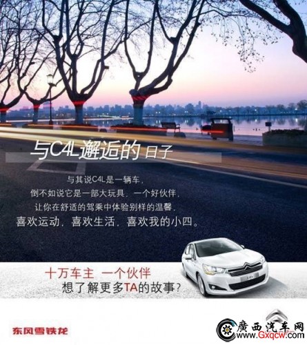 C4L傳承了法系車(chē)極致的操控性和人性化配置的品質(zhì),為趙先生的駕車(chē)生活帶來(lái)了不同凡響的法式體驗(yàn)和無(wú)限精彩,而趙先生全家都非常喜歡這款集休閑、時(shí)尚、運(yùn)動(dòng)于一身的家用車(chē)型!吧钤谟隗w驗(yàn),喜歡運(yùn)動(dòng),喜歡生活,喜歡我的C4L!壁w先生如是說(shuō)。