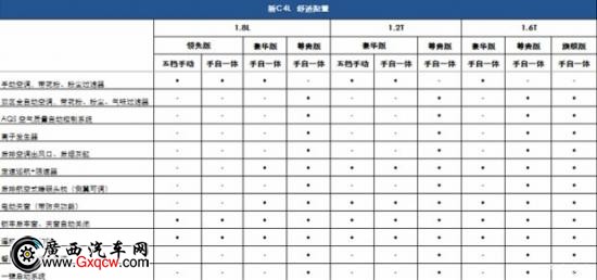在舒適性配置方面,新C4L超長軸距2710mm延續(xù)了此前的大空間優(yōu)勢。AQS空氣質(zhì)量控制系統(tǒng)、正負(fù)離子發(fā)生器也可以有效凈化車內(nèi)空氣,在霧霾天氣中尤為實用。除此之外,后排空調(diào)出風(fēng)口、后排航空式睡眠頭枕等更多顧及了后排乘客的駕駛感受。豪華車款還新增了天窗等配置,進一步提升整體駕乘舒適性。