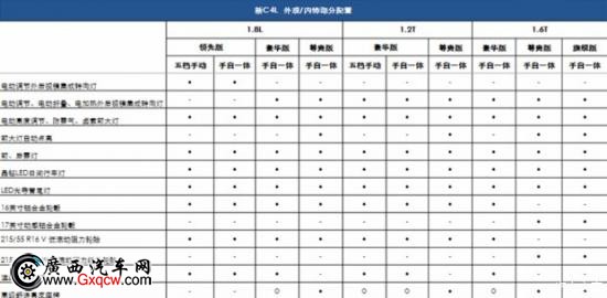 外觀及內(nèi)飾配置方面,新C4L新增了愛琴海藍色,更具有年輕氣息。全系標(biāo)配了電動調(diào)節(jié)防霧氣鹵素前大燈、前后霧燈、LED日間行車燈等裝備,豪華版、尊貴版以及旗艦版車型還新增了電動折疊后視鏡、前大燈自動點亮等功能。