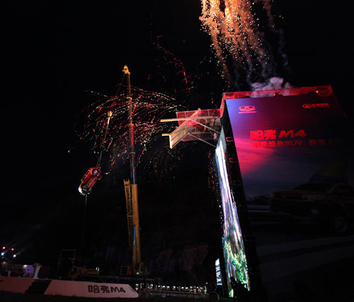 位于京郊四面環(huán)山、景色宜人的哈弗M4上市現(xiàn)場,高高筑起的集裝箱與周圍嚴陣以待的重型設(shè)備已經(jīng)預(yù)示出這并不是一次尋常的上市發(fā)布會。就在現(xiàn)場氣氛即將被神秘和好奇推向頂點時,哈弗M4以最為出人意料的方式登場,在現(xiàn)場近百名嘉賓的見證下,從20.8米的高空,干凈利索地完成了驚世一躍,完成神州**蹦,驚艷上市。