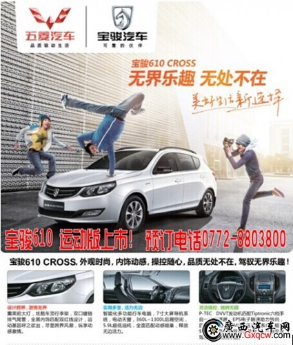 寶駿610 CROSS不僅延續(xù)了寶駿610“美好生活新選擇”的實(shí)用主義風(fēng)格,更為車(chē)型增添了時(shí)尚、動(dòng)感元素,與時(shí)下年輕人的自在生活方式相得益彰,寶駿610 CROSS以其“無(wú)界樂(lè)趣,無(wú)處不在”的生活主張,將成為年輕一代“美好生活新選擇”。