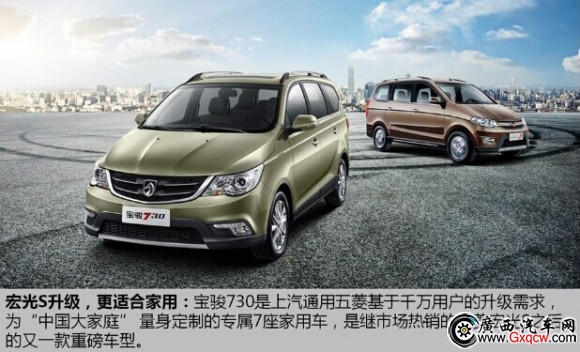 宏光S升級,更適合家用:寶駿730是上汽通用五菱基于千萬用戶的升級需求,為“中國大家庭”量身定制的專屬7座家用車,是繼市場熱銷的五菱宏光S之后的又一款重磅車型。相比宏光S,寶駿730完全是一款舒適愜意、配置豐富的家庭用車,是一臺可以讓全家人在一起享受歡聚時光的幸福座駕。寶駿730基于上汽通用五菱全新自主研發(fā)的轎車化前置前驅(qū)平臺,具有超大空間、全方位安全保障、駕乘皆宜、超值配置四大越級性的產(chǎn)品特點。