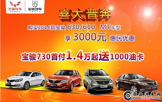 2014五菱寶駿特價(jià)風(fēng)暴給您意想不到的驚喜收獲,伙伴帶您一路“心花路放”!買(mǎi)寶駿,都到汽貿(mào)園雙誠(chéng)寶駿店。