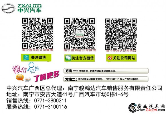 南寧駿鴻達(dá)在這次車(chē)展上的優(yōu)惠也是下足了馬力,廣汽中興C3至尊版推出的7000元現(xiàn)金優(yōu)惠,以及商務(wù)版推出的2年保養(yǎng)0費(fèi)用,都是****的!