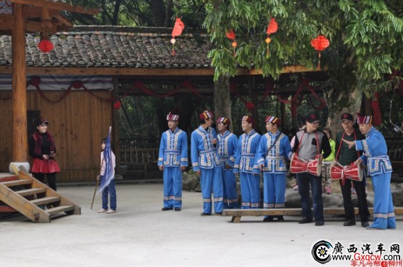 來到劉三姐故里,還有一個小小的節(jié)目。就是模仿當(dāng)年莫老爺與秀才與三姐對歌的場景。