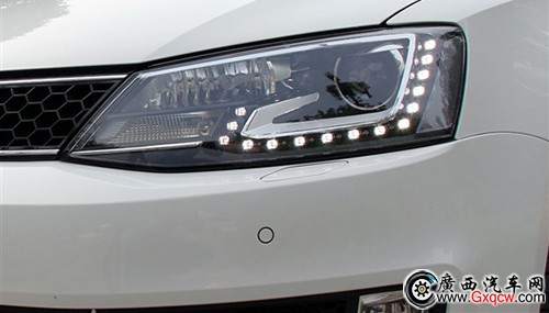 速騰GLI相比普通版加入了更多的運(yùn)動(dòng)元素,蜂窩狀中網(wǎng)、雙色輪圈以及LED日間行車燈和氙氣大燈。