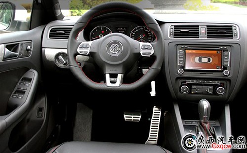 速騰GLI采用全黑內(nèi)飾,三幅式底部削平方向盤、鋁制踏板更是突出動(dòng)感。
