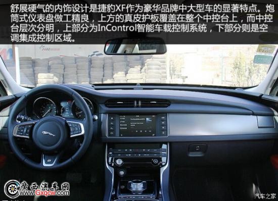 舒 展硬氣的內(nèi)飾設(shè)計是捷豹XF作為豪華品牌中大型車的顯著特點。炮筒式儀表盤做工精良,上方的真皮護板覆蓋在整個中控臺上,而中控臺層次分明,上部分為 InControl智能車載控制系統(tǒng),下部分則是空調(diào)集成控制區(qū)域。另外,該車可以選配多項高科技便利功能,例如并線輔助、自適應巡航、HUD抬頭顯示系 統(tǒng)以及車道偏離預警系統(tǒng)等。