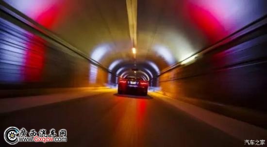 當(dāng)超級(jí)跑車呼嘯而過時(shí),隧道內(nèi)部安裝的照明系統(tǒng),也由白色變成了捷豹標(biāo)志性的紅色,向這臺(tái)至美猛獸行注目禮。