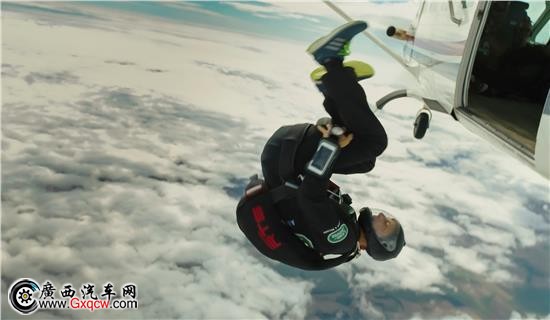 測試過程中,貝爾與六名來自英國皇家跳傘表演團的成員從飛機上一躍而下,并以201公里/小時的速度自由落體。貝爾在降落傘打開前一秒按下了智能手機按鈕,遠程操控了車內的座椅重置。