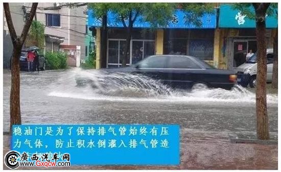 通過積水時(shí),應(yīng)穩(wěn)油門低檔勻速通過。穩(wěn)油門是為了保持排氣管中始終有壓力氣體,防止積水倒灌入排氣管造成車輛熄火。低檔勻速是為了保證車輛通過積水時(shí)能穩(wěn)定有力。