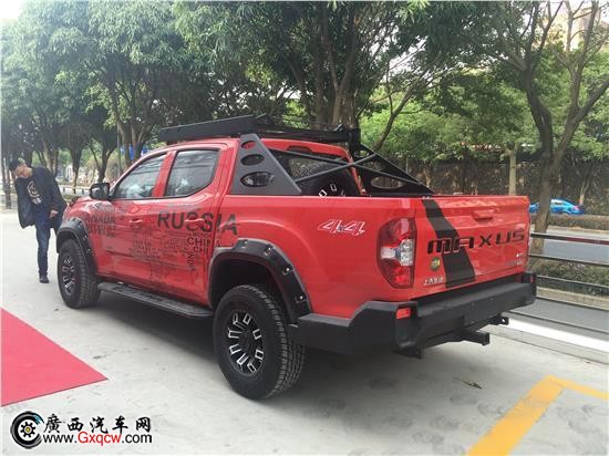 越野版T60尾部“MAXUS”造型立體感突出,黑紅色的搭配更是增加整體的視覺(jué)沖擊力。