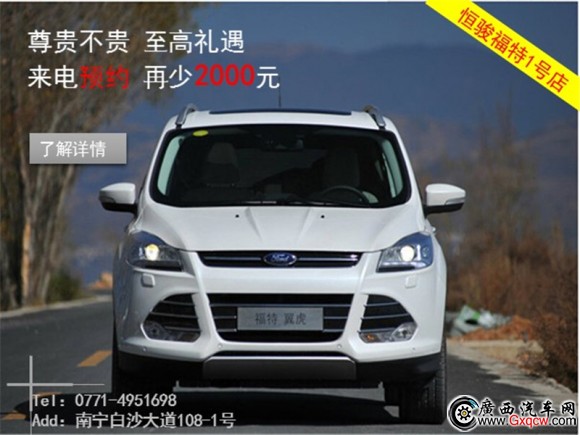 南寧恒駿福特白沙1號店多車型現(xiàn)車充足,即日起可通過購車免費咨詢熱線0771-4951698了解*新的促銷信息,成功預約到店更享2000元優(yōu)惠。來店前致電免費咨詢熱線0771-4951698預約到店多重實惠,趕緊致電0771-4951698預約吧。!